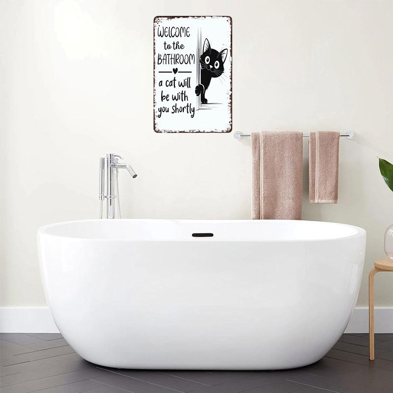 Varm, lekfull och precis lagom rolig â denna vintagevĂ€ggskylt med kattmotiv ger omedelbar personlighet till ditt badrum och gör varje besök lite mer minnesvĂ€rt.